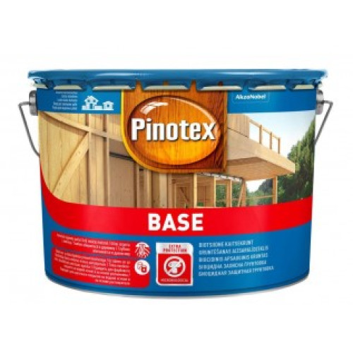 PINOTEX BASE - безбарвна захисна ґрунтовка, застосовується при використанні як засобів захисту деревини PINOTEX, так і інших фарб для деревини. Глибоко проникає, забезпечує хорошу адгезію і запобігає поширенню грибкових захворювань  в деревині.