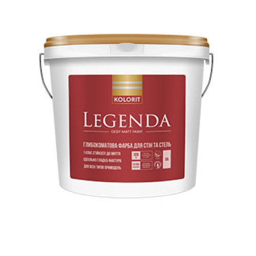 Інтерєрна фарба Legenda - глибоко матова стійка до миття латексна фарба на акрилатній основі для внутрішніх робіт. Фарба не стікає і швидко сохне, пофарбовану поверхню можна мити (клас 1 стійкості до мокрого стирання). Виріб не містить органічних розчинників, практично без запаху. Тонується тільки в темні і насичені кольори.