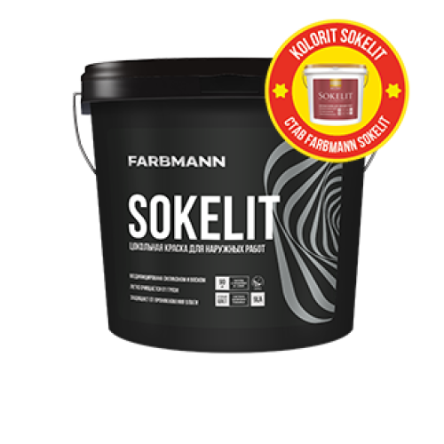 Фарба цокольна Farbmann Sokelit  - латексна атмосферостійка фарба  для тривалого захисту та декору фасадів, а також інших зовнішніх мінеральних стінних поверхонь. Покриття має високу водостійкість, стійкість до атмосферних впливів і застосовується для нового фарбування або ремонту старої поверхні. Виріб не містить органічних розчинників, практично без запаху. Тонується в темні і насичені кольори.