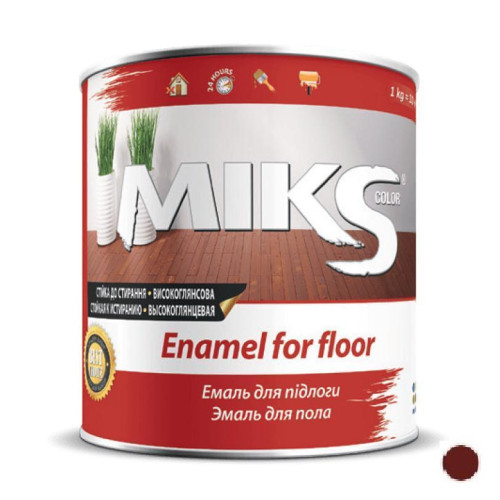 Емаль для підлоги Miks – високоглянсева, стійка до стирання та дії миючих засобів алкідна емаль для дерев`яних підлог та інших поверхонь усередині приміщень.