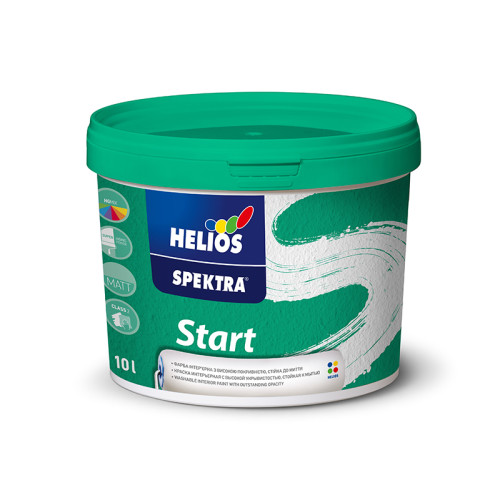 Фарба для стін і стелі SPEKTRA Start - стійка до миття інтер'єрна фарба для декорування та захисту поверхонь стін усередині приміщень.