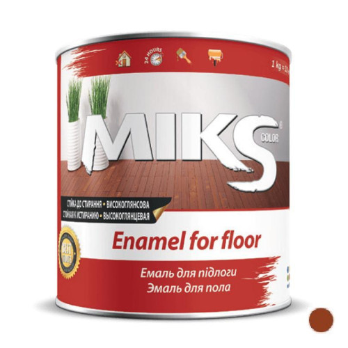 Емаль для підлоги Miks – високоглянсева, стійка до стирання та дії миючих засобів алкідна емаль для дерев`яних підлог та інших поверхонь усередині приміщень.